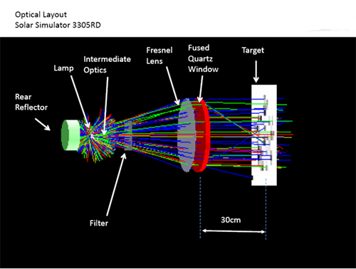 構(gòu)建了**終的太陽(yáng)模擬器系統(tǒng),并進(jìn)行了一系列測(cè)試,以證明殼體保持所需溫度和真空兼容性的能力。所有光學(xué)設(shè)計(jì)測(cè)試均提前進(jìn)行,以確保滿足**終用戶要求的所需光功率,光譜匹配,準(zhǔn)直角和其他規(guī)格。