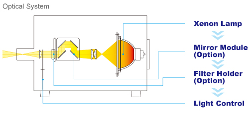 LAX-C100是標(biāo)準(zhǔn)100 W的氙光源。其**的鏡面模塊屏蔽了熱量和雜散光,得到理想的波長范圍。LAX-C100也可以通過通光帶濾光器形成單色光。