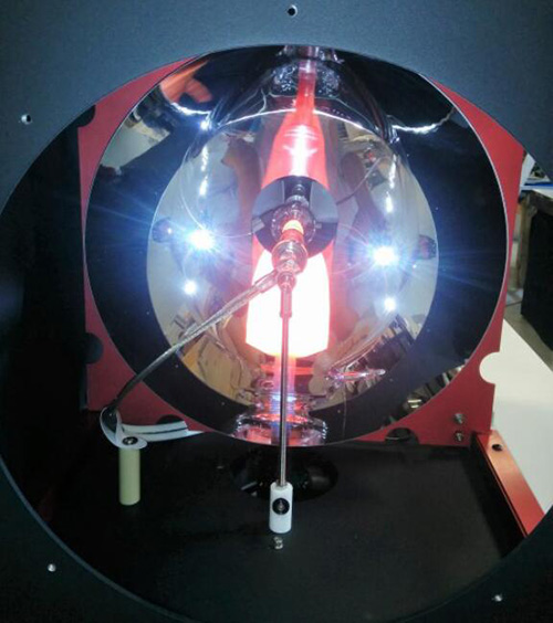 在外殼201-6.5K中,弧光燈或QTH燈安裝在垂直位置。輻射從燈的側(cè)面收集。安裝在可調(diào)節(jié)對(duì)準(zhǔn)銷上的后球形反射鏡將**的燈輻射重定向到前出口,從而增加了收集的光量并允許更均勻的光束(額外的光學(xué)配置)。